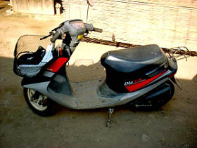 | このバイクで、9枚の畑を飛び回ります。(忙しいときはノーヘルです) |