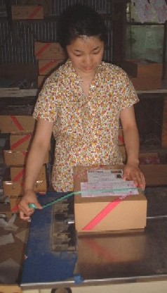 | これは桃の箱を縛っている結束機です。 これができてからは仕事もだいぶ楽になりました。 娘もだいぶ手伝ってくれろようになりました。 |