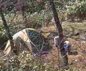 こちらのサイトは、中島川に面した沢ぐるみの木に囲まれたサイトです。 4張りのテントとタ−プが張れ、水場も近くにあり、夏には、人気のサイトです。 夜など、たき火の火を囲み、美しい渓流のそばで、ゆったりと時が流れます。 子供さんの、水遊びもテントのそばで見ることが出来ます。 ホームに戻る