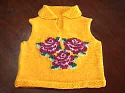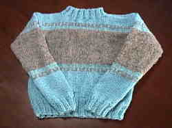 |  | 11才用のセーターです。 転がしてある糸を見て、配色が決まりました。